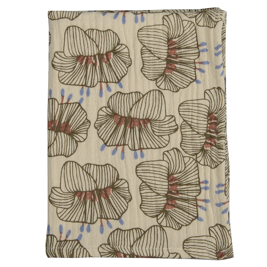 Полотенце кухонное из хлопкового муслина молочного цвета с принтом Цветы из коллекции Prairie, 50х70 см, Tkano
