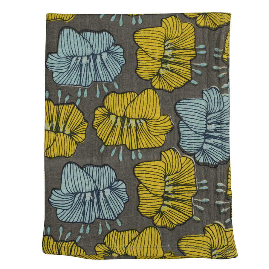 Серое кухонное полотенце из хлопкового муслина с принтом Цветы из коллекции Prairie добавит флористические мотивы в интерьер. Дизайн с крупными цветами голубого и горчичного оттенков гармонично впишется в любой современный стиль. Муслин отлично впитывает и испаряет влагу, не деформируется и не линяет при стирке, на нем не образуются катышки. Подходит для ежедневного использования и не оставляет ворсинок при протирании посуды. Плотность ткани - 185GSM.