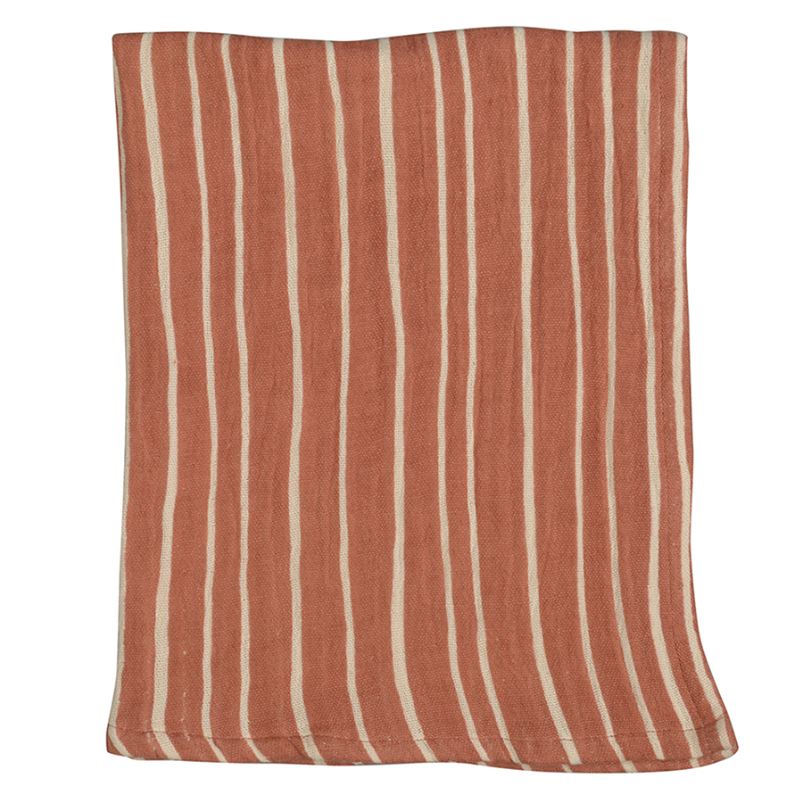 Полотенце кухонное из хлопкового муслина терракотового цвета с принтом Полоски из коллекции Prairie, 50х70 см, Tkano