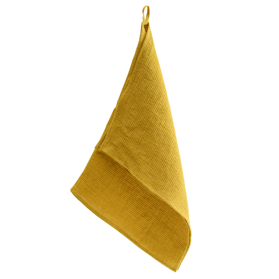 Полотенце кухонное вафельное из умягченного льна горчичного цвета из коллекции Essential, 47x70 см, Tkano