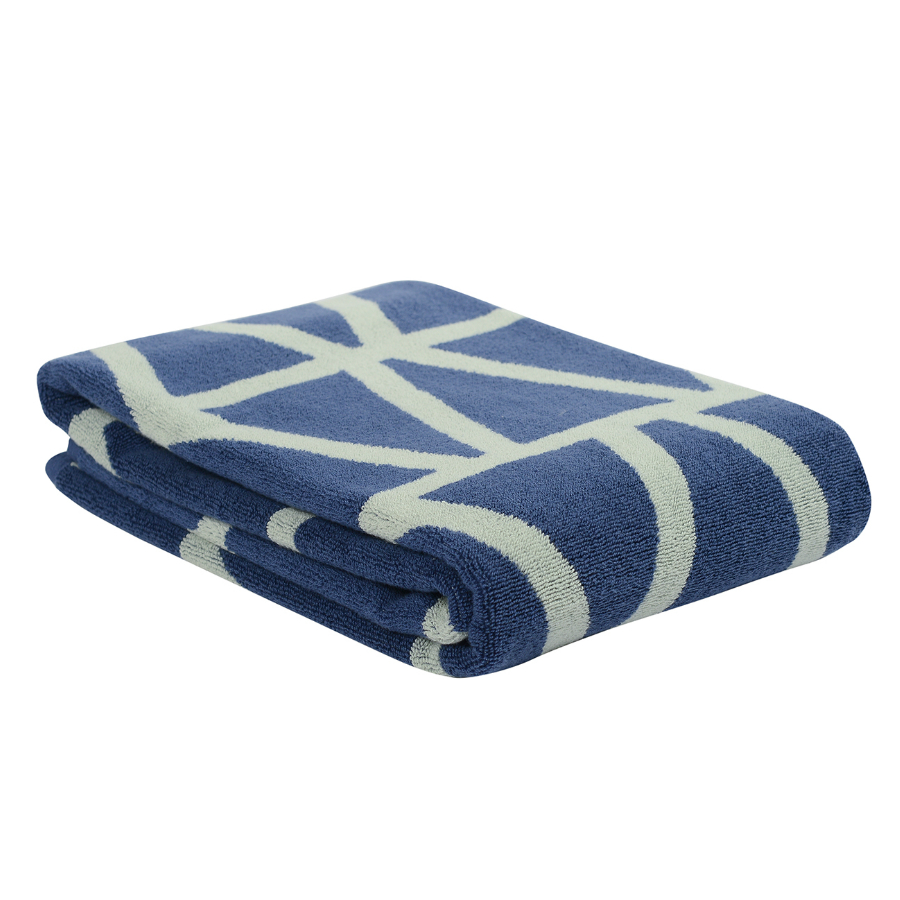 Полотенце жаккардовое банное с авторским дизайном Geometry серо-синее Wild, 70х140 см, Tkano