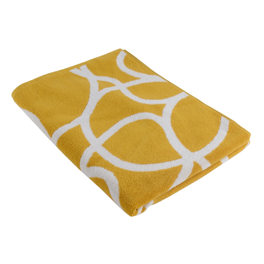 Полотенце жаккардовое с авторским дизайном Gravity горчичного цвета Cuts&Pieces, 70х140 см, Tkano