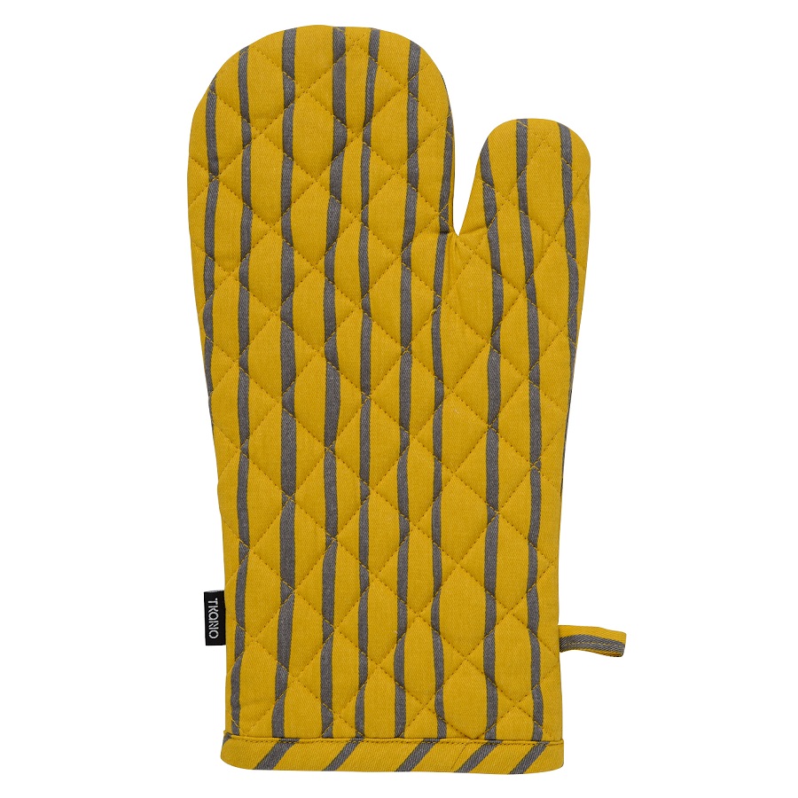 Прихватка-варежка из хлопка горчичного цвета с принтом Полоски из коллекции Prairie, 33х17,5 см, Tkano