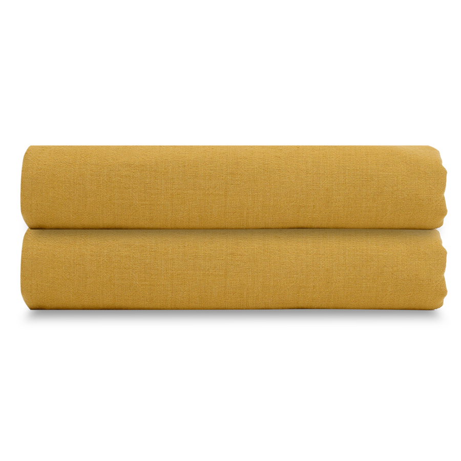 Простыня на резинке изо льна горчичного цвета Essential, 180х200х28 см, Tkano
