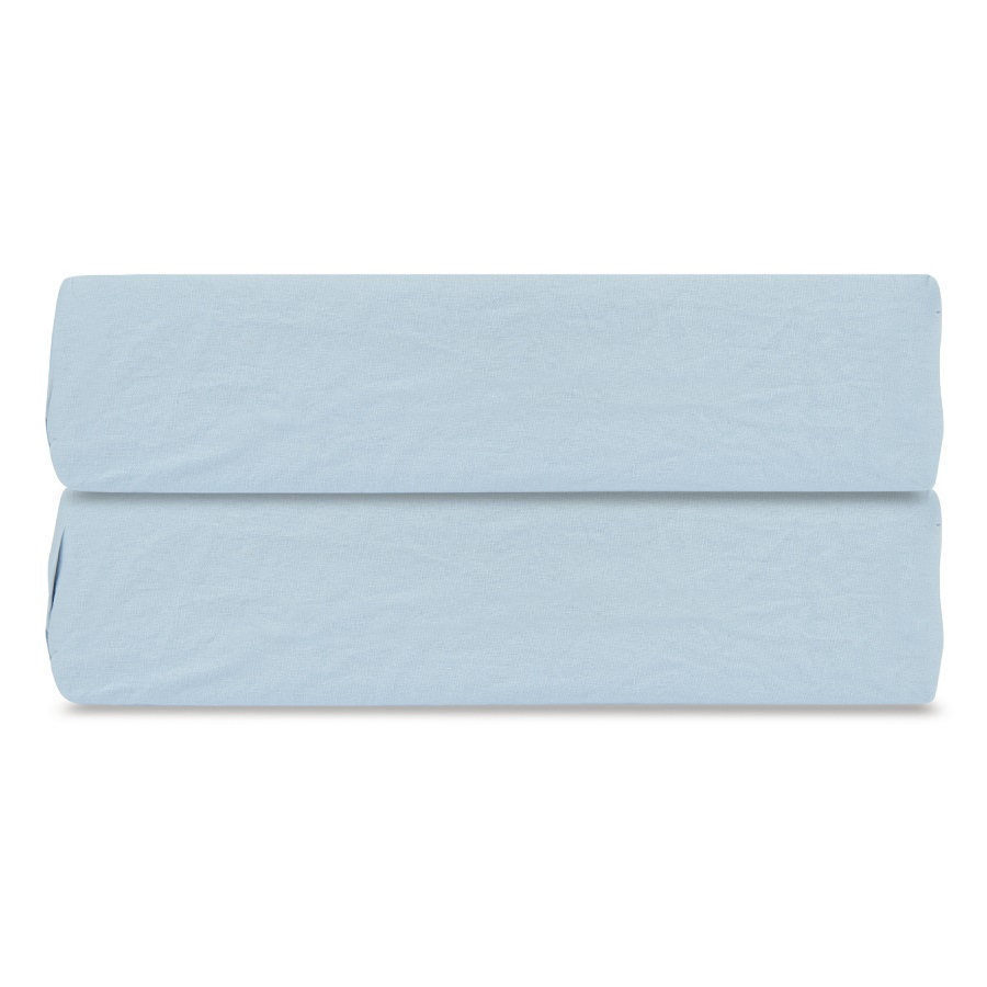 Простыня на резинке небесно-голубого цвета из органического стираного хлопка из коллекции Essential, 180х200 см, Tkano