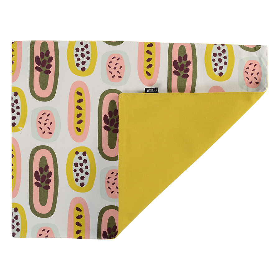 Салфетка двухсторонняя под приборы горчичного цвета с принтом Passion Fruit из коллекции Wild, 35х45, Tkano