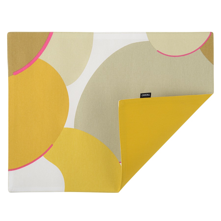 Салфетка двухсторонняя под приборы из хлопка горчичного цвета с авторским принтом из коллекции Freak Fruit, 35х45 см, Tkano