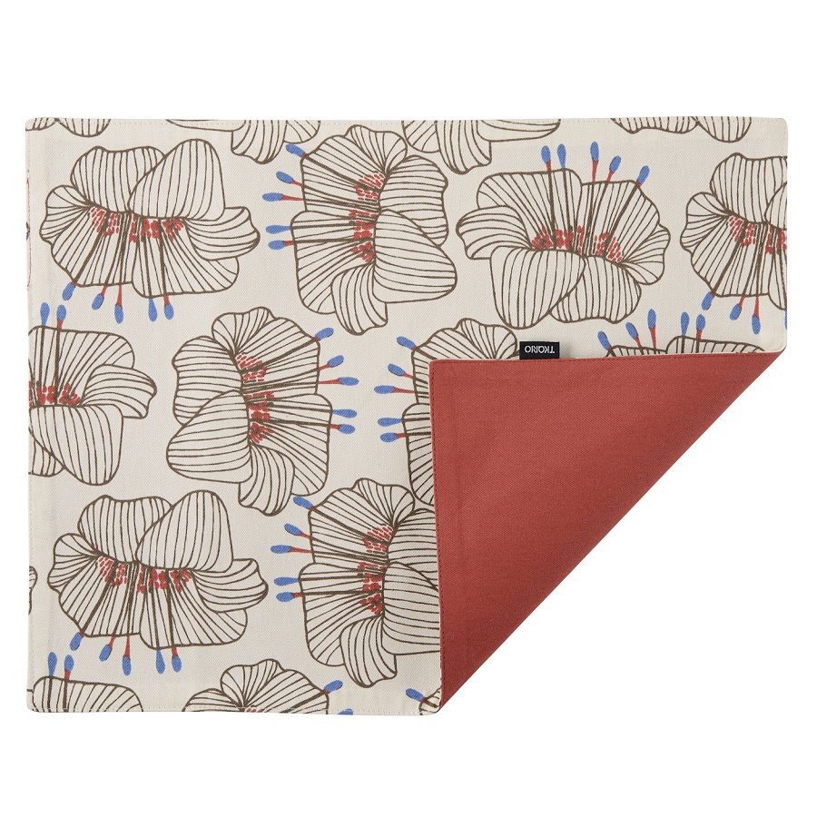 Салфетка двухсторонняя под приборы из хлопка терракотового цвета с принтом Цветы из коллекции Prairie, 35х45 см, Tkano