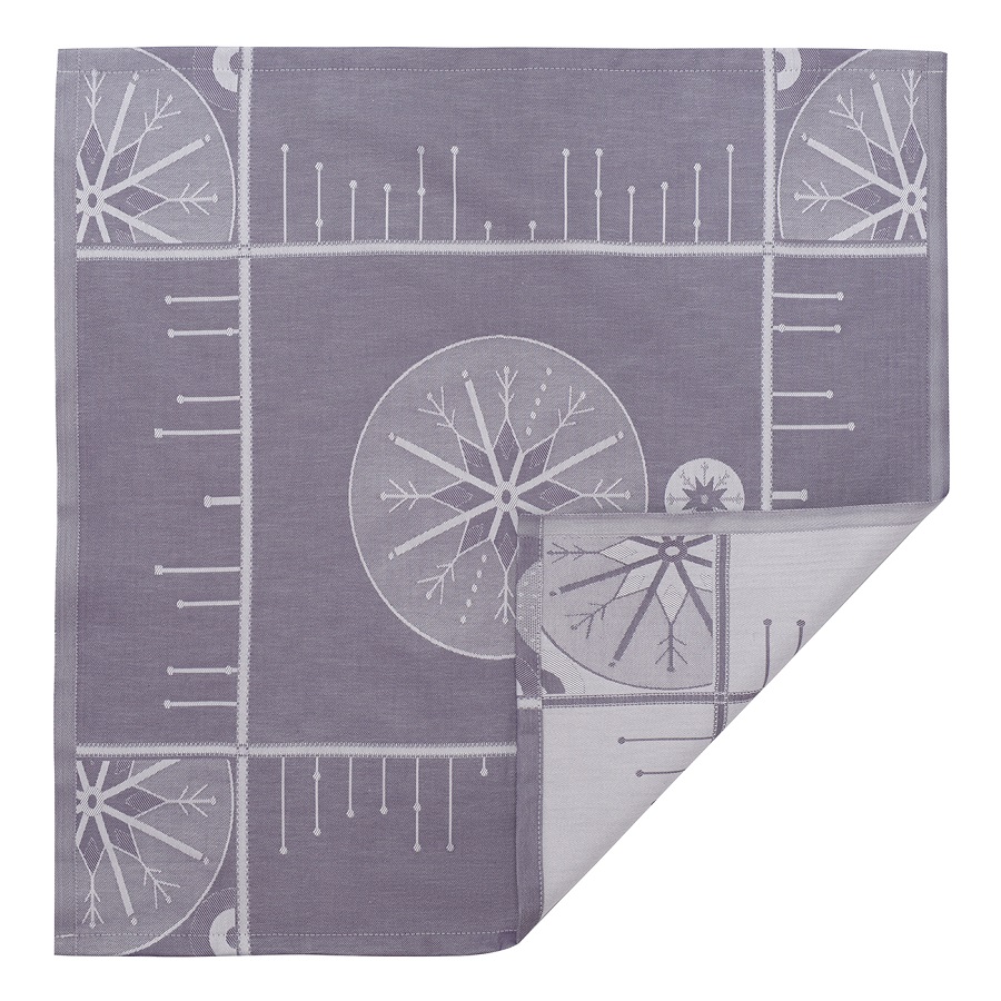 Салфетка из хлопка фиолетово-серого цвета с рисунком Ледяные узоры, New Year Essential, 53х53см, Tkano