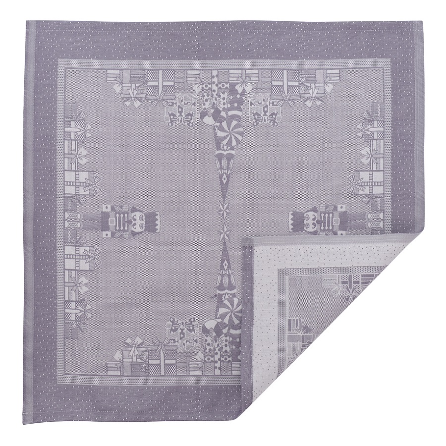 Салфетка из хлопка фиолетово-серого цвета с рисунком Щелкунчик, New Year Essential, 53х53см, Tkano