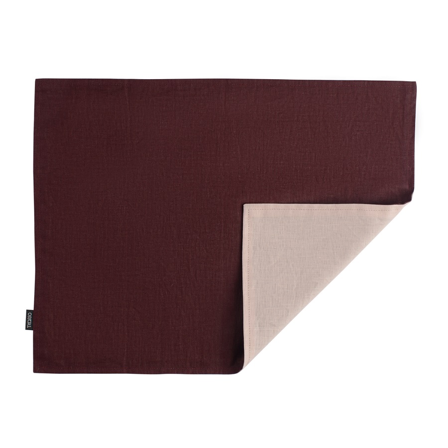 Салфетка под приборы из умягченного льна с декоративной обработкой бордо/розовый Essential, 35х45 см, Tkano