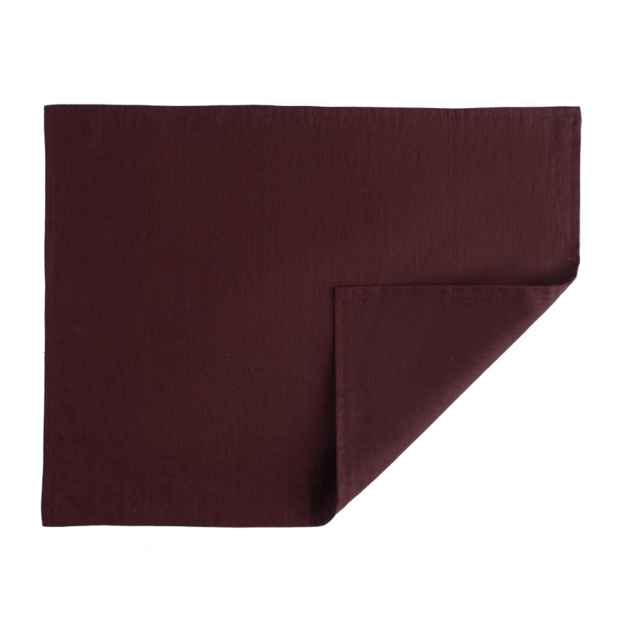 Салфетка под приборы из умягченного льна с декоративной обработкой бордового цвета Essential, 35х45, Tkano