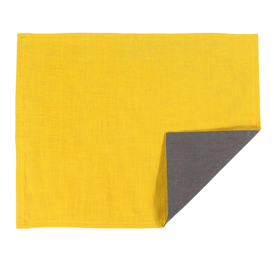 Салфетка под приборы из умягченного льна с декоративной обработкой серый/горчица Essential, 35х45 см, Tkano