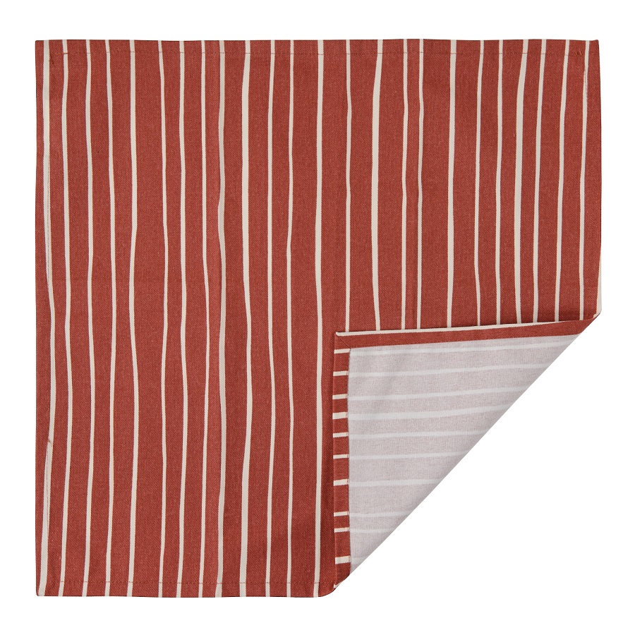 Салфетка сервировочная из хлопка терракотового цвета с принтом Полоски из коллекции Prairie, 45х45 см, Tkano