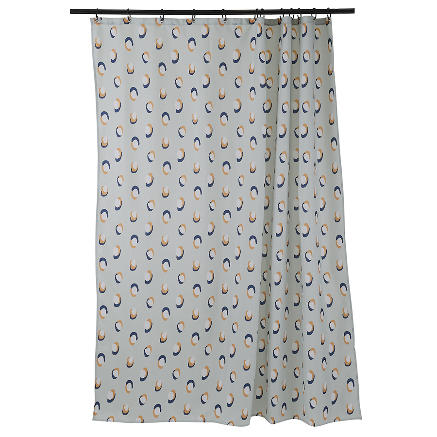 Изделие выполнено из полиэстера с водоотталкивающей пропиткой, поэтому хорошо защищает от брызг. Штора поставляется в стильной упаковке-сумочке с таким же принтом. Кольца для шторы не входят в комплект. Плотность ткани - 90GSM.