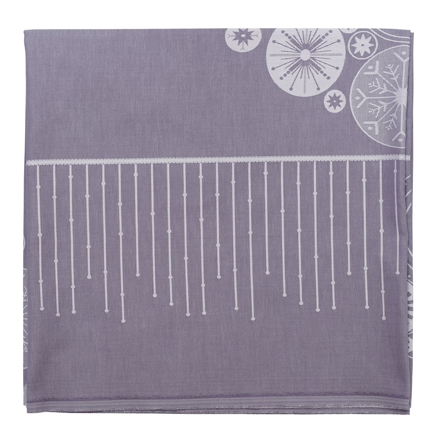 Скатерть из хлопка фиолетово-серого цвета с рисунком Ледяные узоры, New Year Essential, 180х260см, Tkano