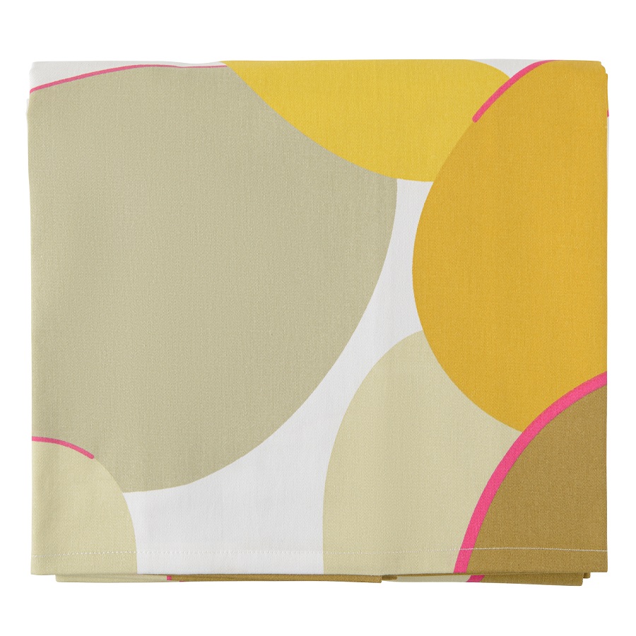 Скатерть из хлопка горчичного цвета с авторским принтом из коллекции Freak Fruit, 170х170 см, Tkano