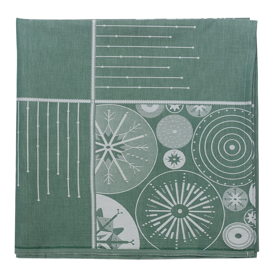 Скатерть из хлопка зеленого цвета с рисунком Ледяные узоры из коллекции New Year Essential, 180х180см, Tkano