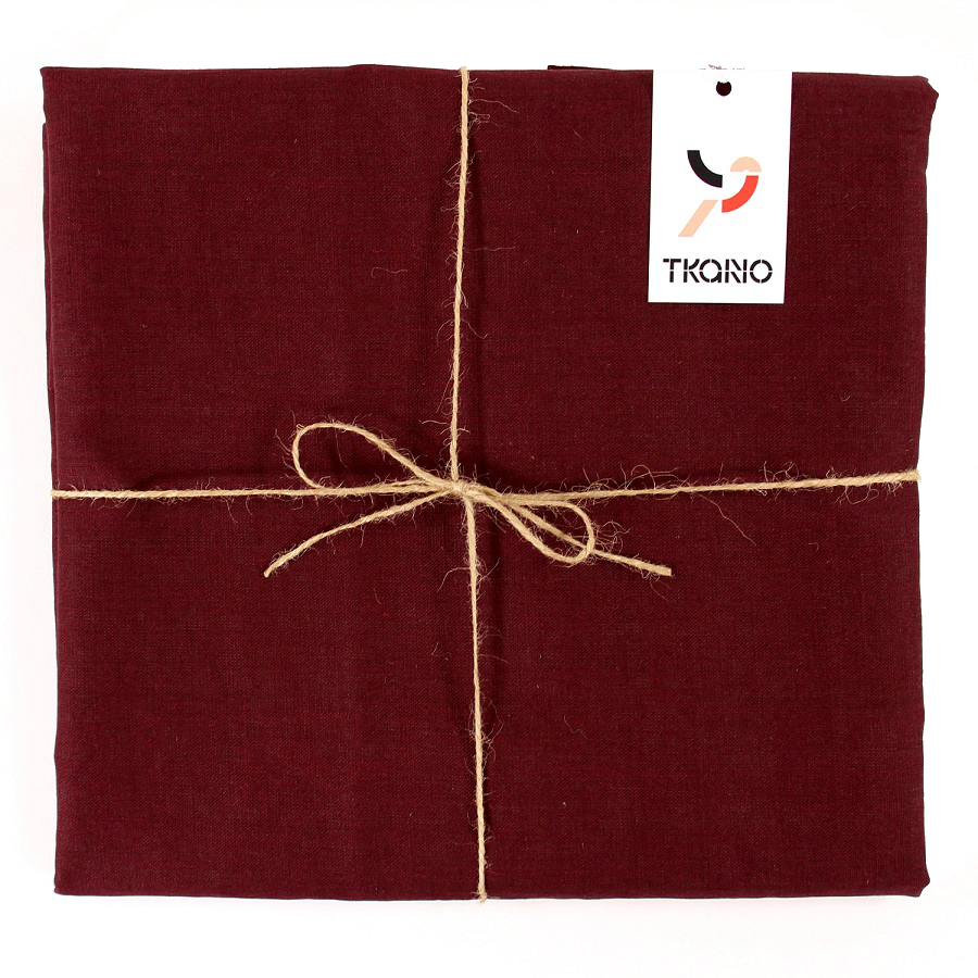 Скатерть на стол из умягченного льна с декоративной обработкой бордового цвета Essential, 143х250 см, Tkano