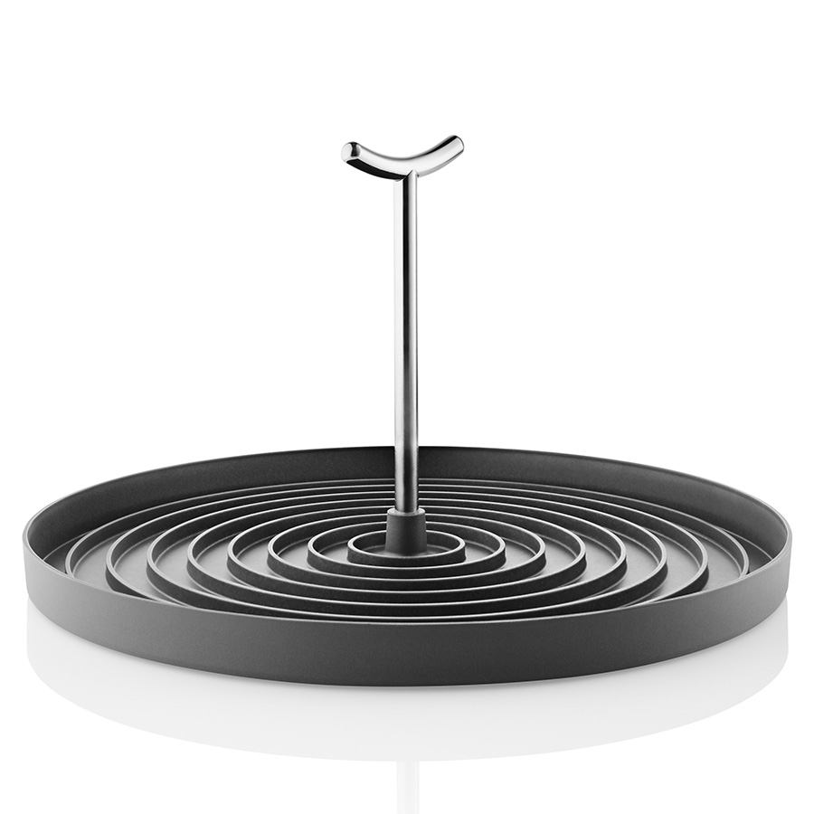 Стильная и практичная сушилка для посуды позволит обойтись без надоевших кухонных полотенец и предотвратит скапливание влаги на столешницах. В круглый поддон собираются излишки воды, которую можно легко слить в раковину. Сушилка вмещает четыре комплекта посуды: чашки и стаканы хранятся перевернутыми вверх дном, а тарелки опираются на стойку из нержавеющей стали. За счет складывающегося центрального стержня аксессуар легко и удобно хранить после использования.